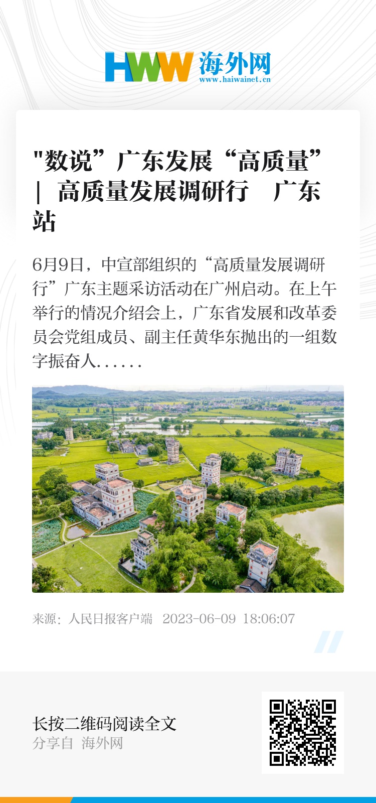 6月9日,中宣部组织的“高质量发展调研行”广东主题采访活动在广州启动。在上午举行的情况介绍会上,广东省发展和改革委员会党组成员、副主任黄华东抛出的一组数字振奋人心,让参加调研的中央、省、市重点新闻媒体记者充分触摸到广东高质量发展的强劲“脉搏”。