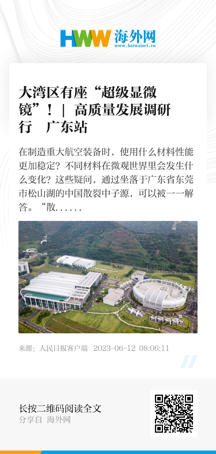 大科学装置是帮助我国在未来科技竞争中不受制于人的“国之重器”,也是高质量发展的重要支撑。作为最早落地珠三角的国家重大科技基础设施,中国散裂中子源经过10多年的建设和运行,不仅为“世界工厂”东莞的高质量发展注入了创新活力,也为我国基础科学研究和产业发展提供了强劲动能。