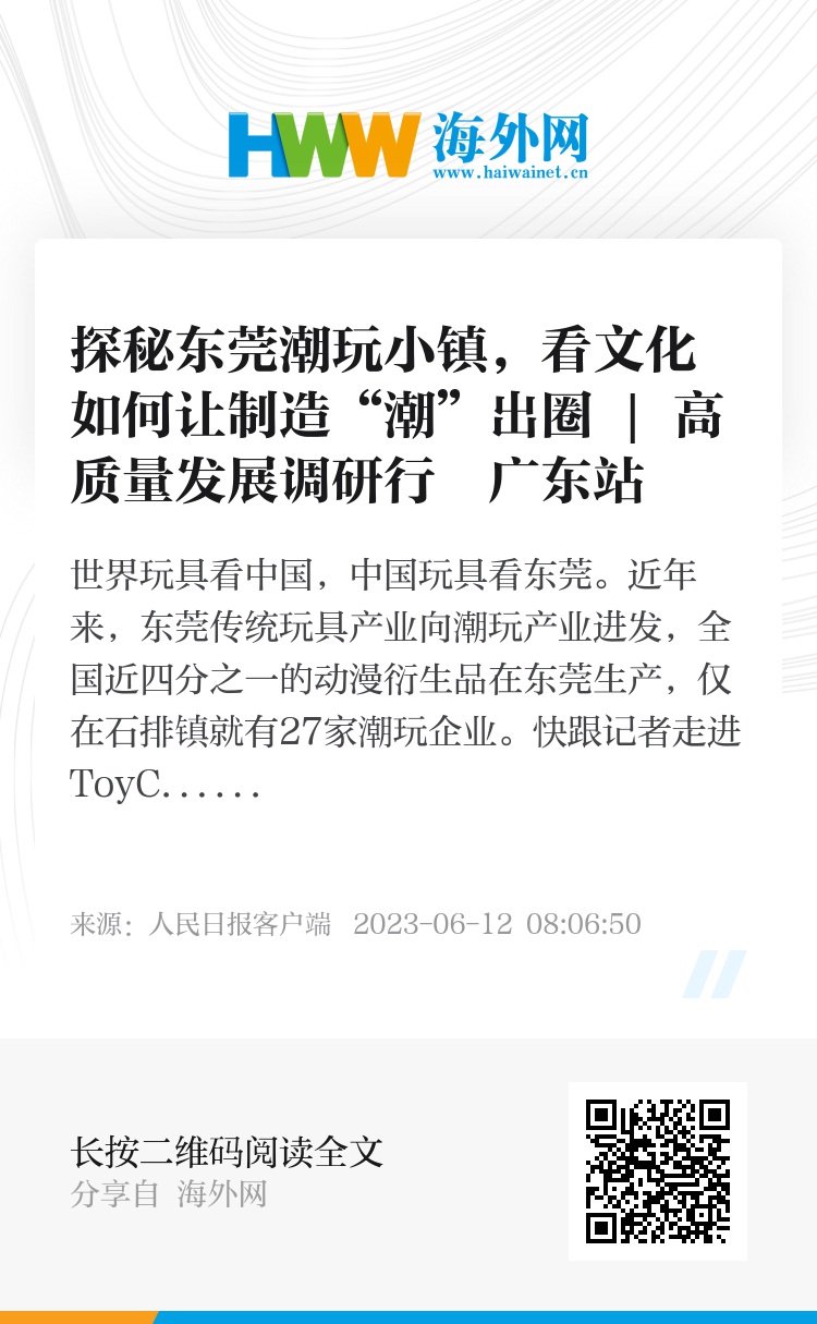 世界玩具看中国,中国玩具看东莞。近年来,东莞传统玩具产业向潮玩产业进发,全国近四分之一的动漫衍生品在东莞生产,仅在石排镇就有27家潮玩企业。
