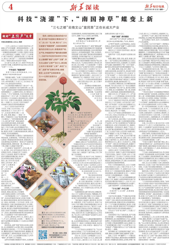 “三七具有打造知名‘土特产’的潜力。”崔秀明说,三七产业对科技依存度高,要加快相关机理、临床研究,加强新技术、新科研成果的转化和落地。