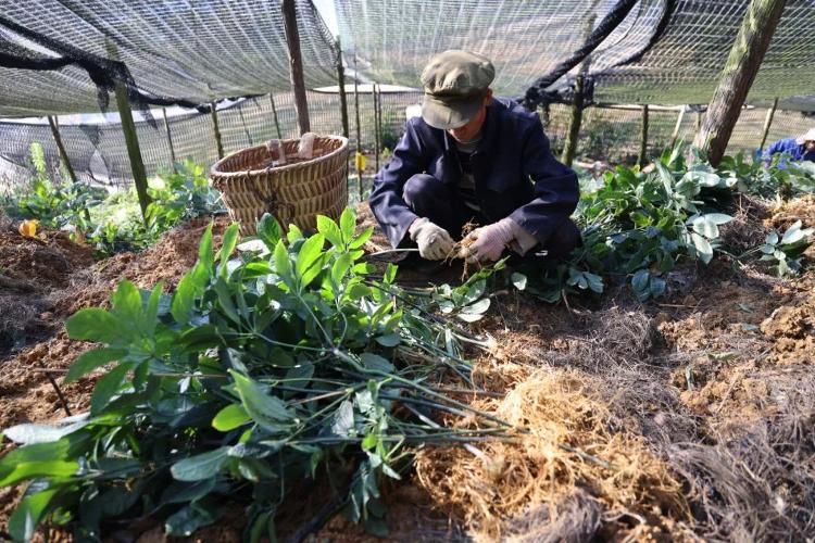 村民正在采挖三七。(新华每日电讯记者谢锐佳2023年2月13日摄)