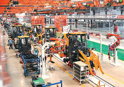 得益于RCEP协定生效,柳州工程机械海外订单量不断增多。图为6月2日,工人在广西壮族自治区柳州市柳工装载机灯塔工厂升级后的车间里赶制海外订单产品。黎寒池摄(人民视觉)