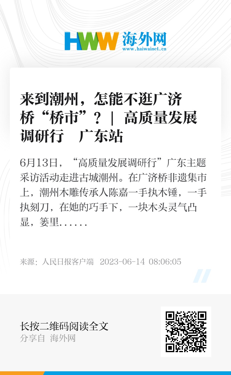 “目前,广济桥‘桥市’成为公众领略潮州古城魅力的好窗口,既为潮州文旅产业发展注入新的活力,也为非遗文化传承提供了新的平台。”钟敏说。