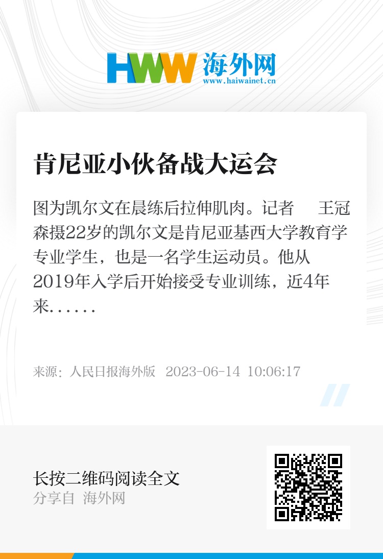 今年夏天,凯尔文将作为肯尼亚大学生田径队队长出征成都大运会。“我将参加10公里和半程马拉松两项比赛,我有信心能再次登上领奖台。”凯尔文说,“中国有着丰富的历史文化,我希望能有机会在成都做更多探索,并结交中国朋友。”