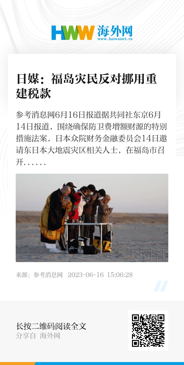 报道称,当天会议上,福岛大学名誉教授铃木浩以东京电力公司福岛第一核电站反应堆报废工作尚无眉目为由,批评称“挪用财源将妨碍重建的推进”。致力于支援灾民的福岛县南相马市的大土雅宏表示:“为什么把重建财源用于防卫费?作为一名福岛县民,我对这一消息感到悲哀。”