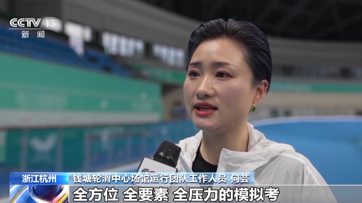 钱塘轮滑中心场馆运行团队工作人员 何芸:系列赛事就是在亚运会赛前对我们场馆进行的一个全方位、全要素、全压力的“模拟考”。通过模拟考,我们可以知道整个场馆的专业度和不足之处,也能对场馆运行团队各业务领域的专业度和协同度进行一次考验,为即将到来的亚运会积累经验,做好更充足的准备。