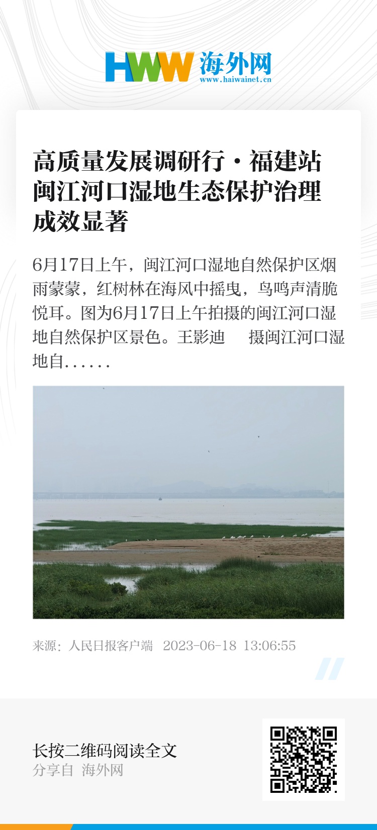 闽江河口湿地生态保护治理成效显著,不仅为多种全球濒危物种尤其是迁徙候鸟提供了关键栖息地,也成为了福建省重点生态建设区域和福州的重要生态屏障,对于维护福州生态平衡、保障福州生态安全具有重要的战略意义。