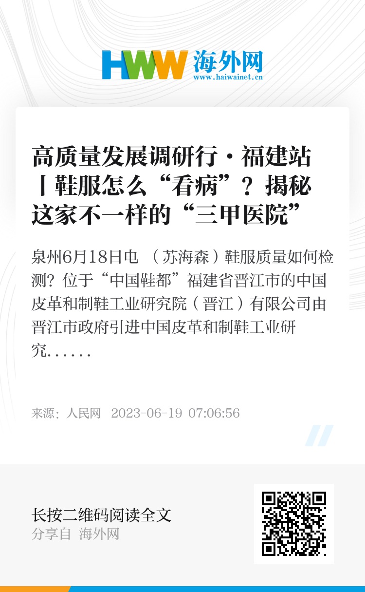 这家鞋服的“三甲医院”是集研发设计、标准检测、应用推广、行业服务为一体的技术创新平台和公共服务平台,严把鞋服质量标准,科学利用数据加强创新,为鞋服产业高质量发展注入新动能。
