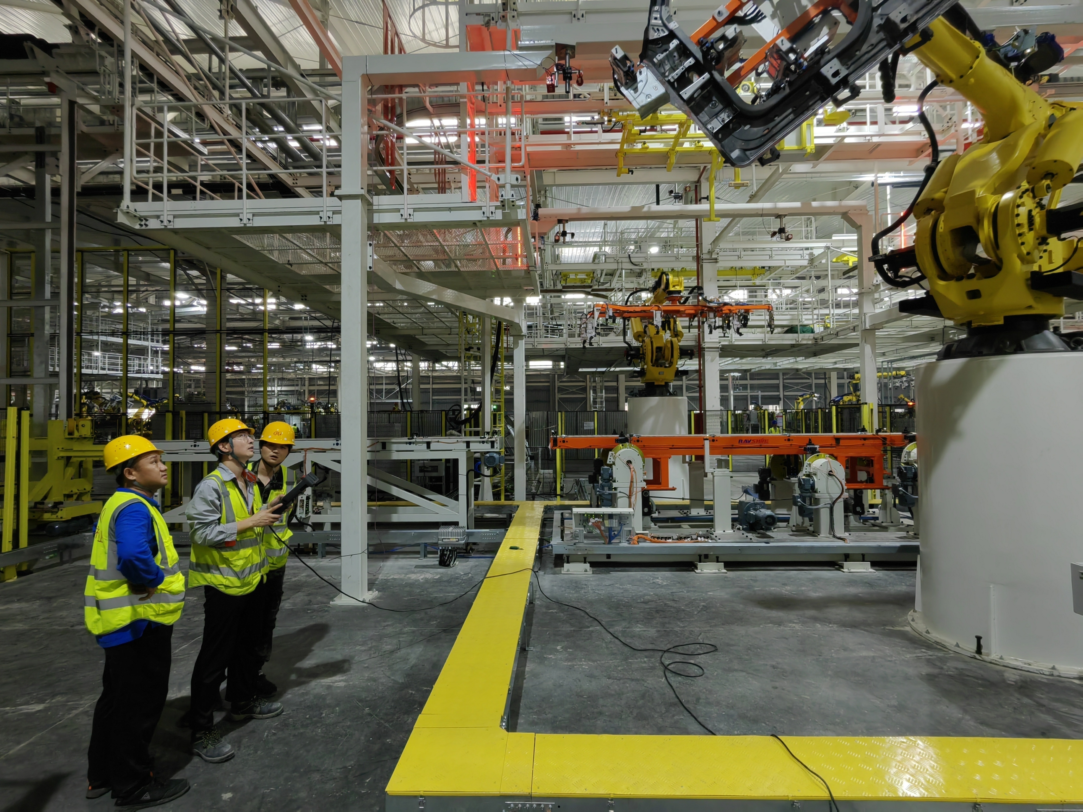 图为东南汽车冲焊车间改造升级现场。本报记者 王影迪摄。