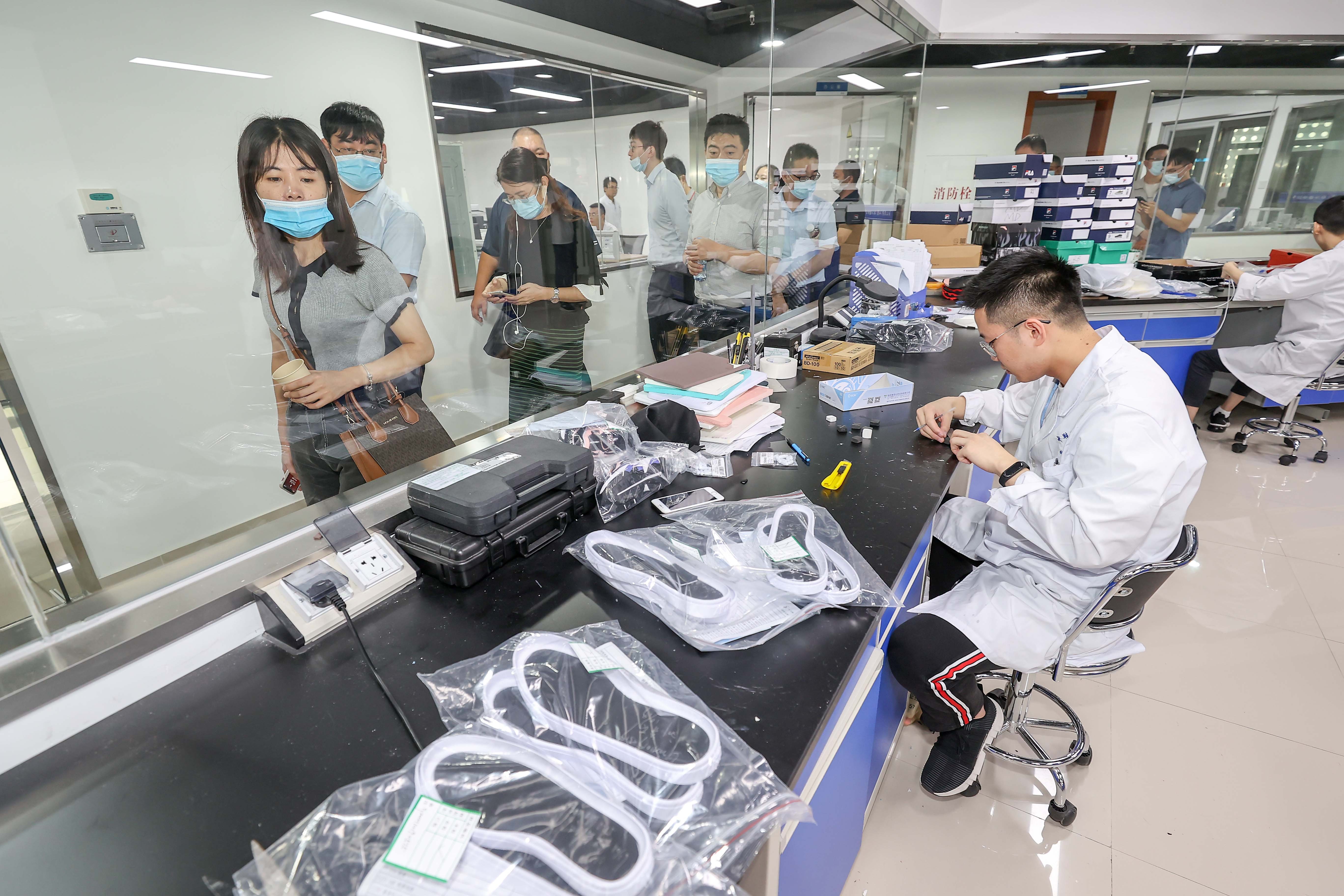 图为中鞋革晋江院工作人员在进行测试。资料图片