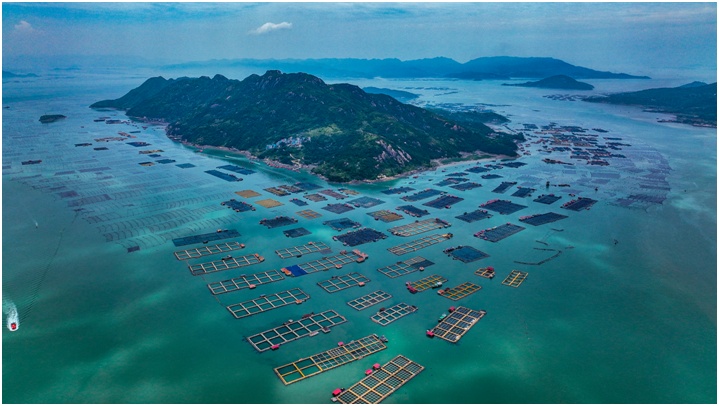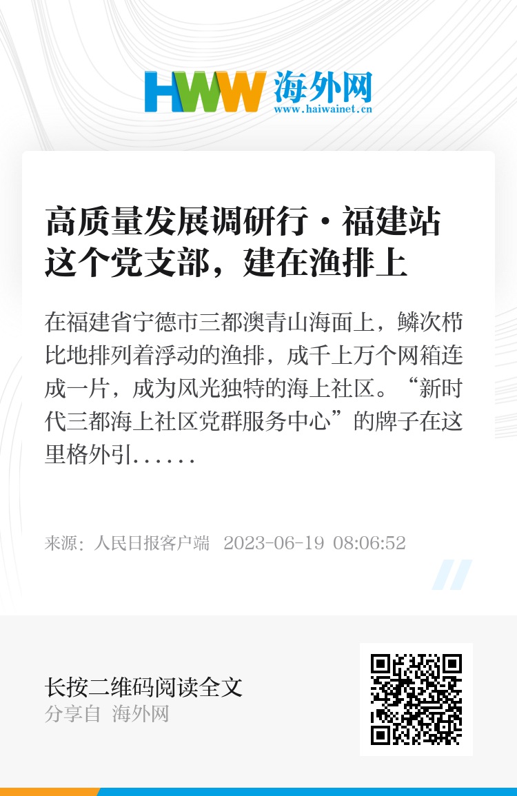 在福建省宁德市三都澳青山海面上,鳞次栉比地排列着浮动的渔排,成千上万个网箱连成一片,成为风光独特的海上社区。“新时代三都海上社区党群服务中心”的牌子在这里格外引人注目。