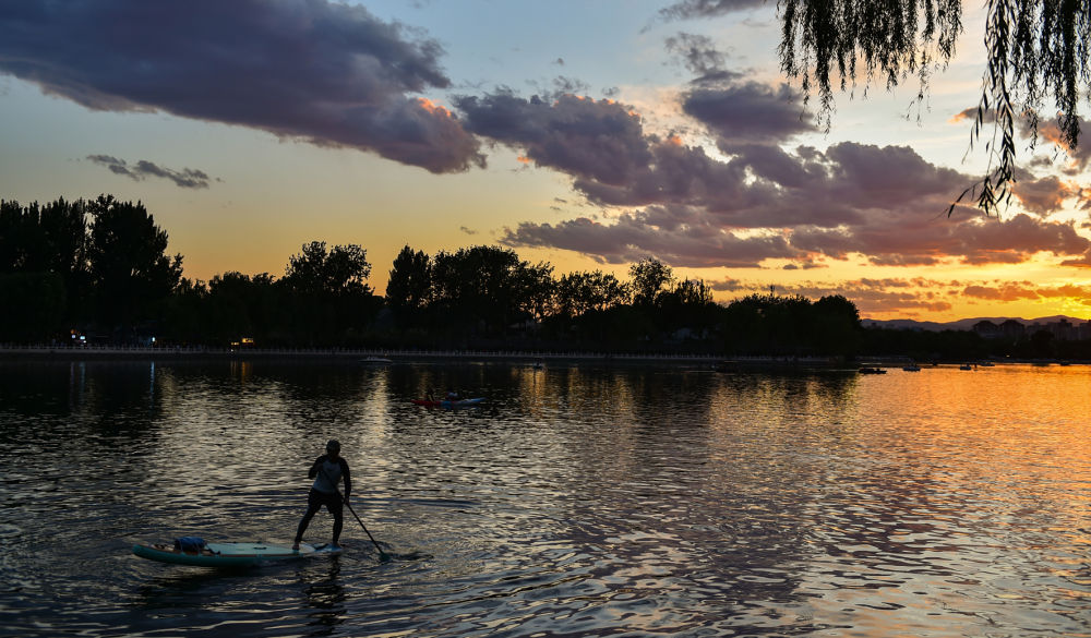 2023年6月10日,夕阳下的什刹海。新华社记者陈钟昊摄
