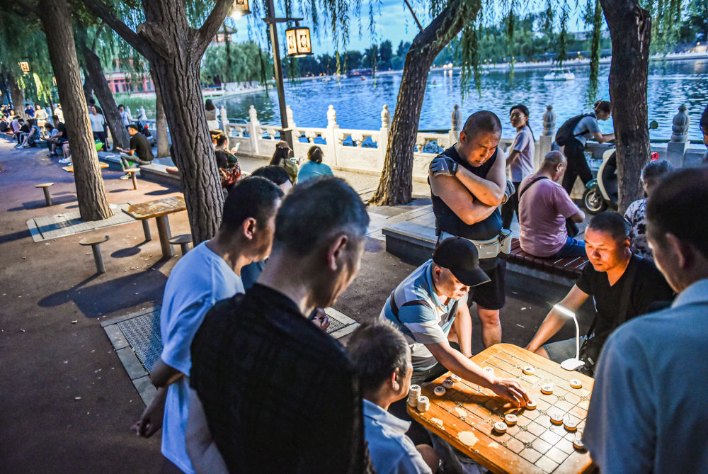 2023年6月10日,市民在北京什刹海边下棋。新华社记者陈钟昊摄