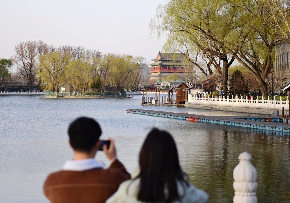2023年3月12日,游客在北京什刹海游玩。新华社记者张晨霖摄