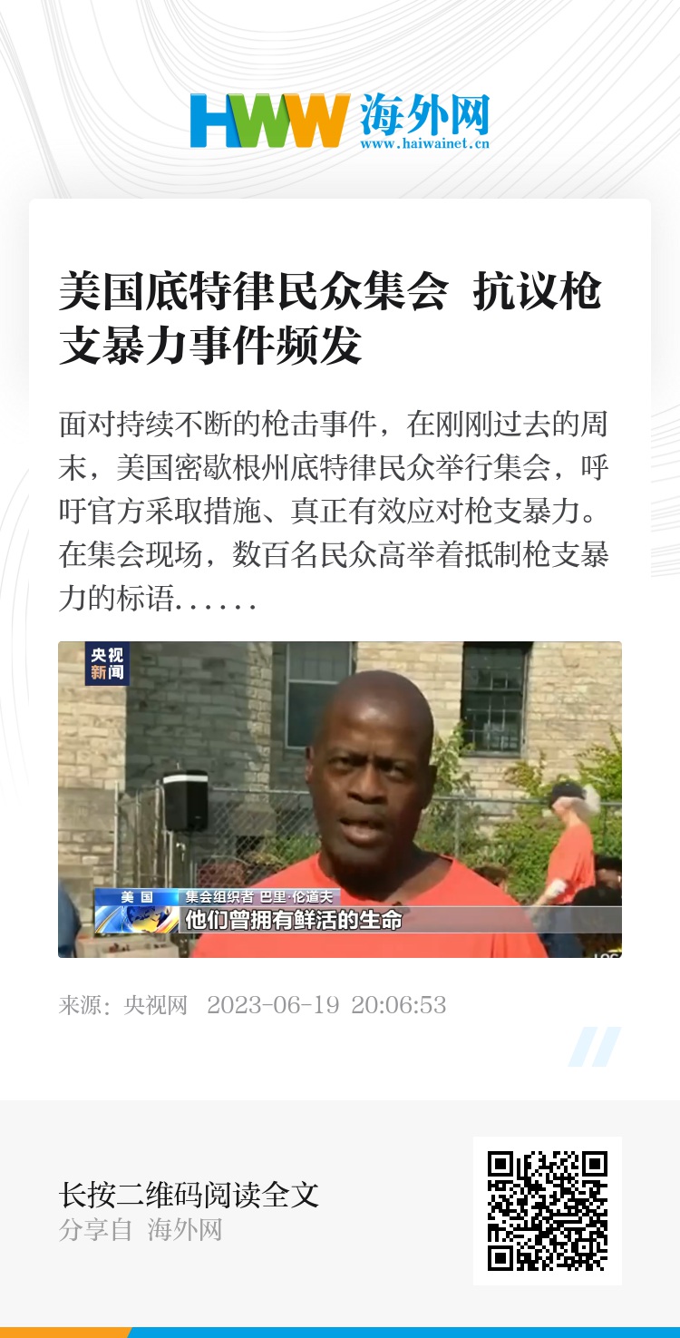 面对持续不断的枪击事件,在刚刚过去的周末,美国密歇根州底特律民众举行集会,呼吁官方采取措施、真正有效应对枪支暴力。