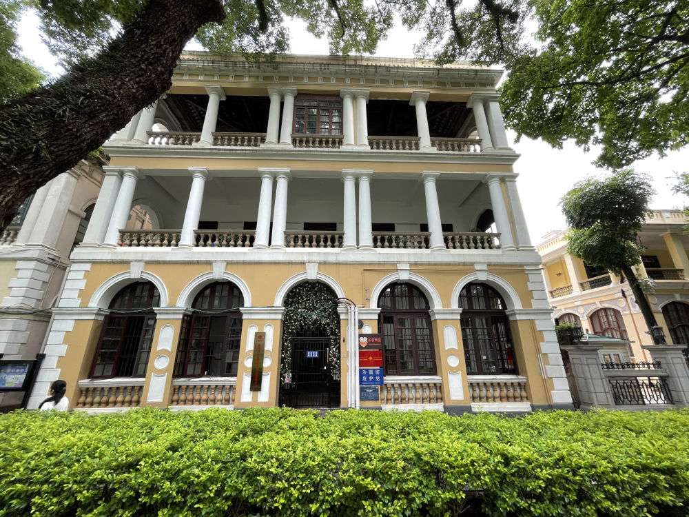 在年轻人聚集的咖啡馆、博物馆对面,附近的老人们也在一幢三层欧式建筑中,享受着自己的惬意时光,这里是沙面街综合养老服务中心。