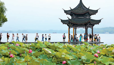 夏日的杭州西湖诗情画意,吸引了众多市民游客游玩。周方玲摄(人民图片)