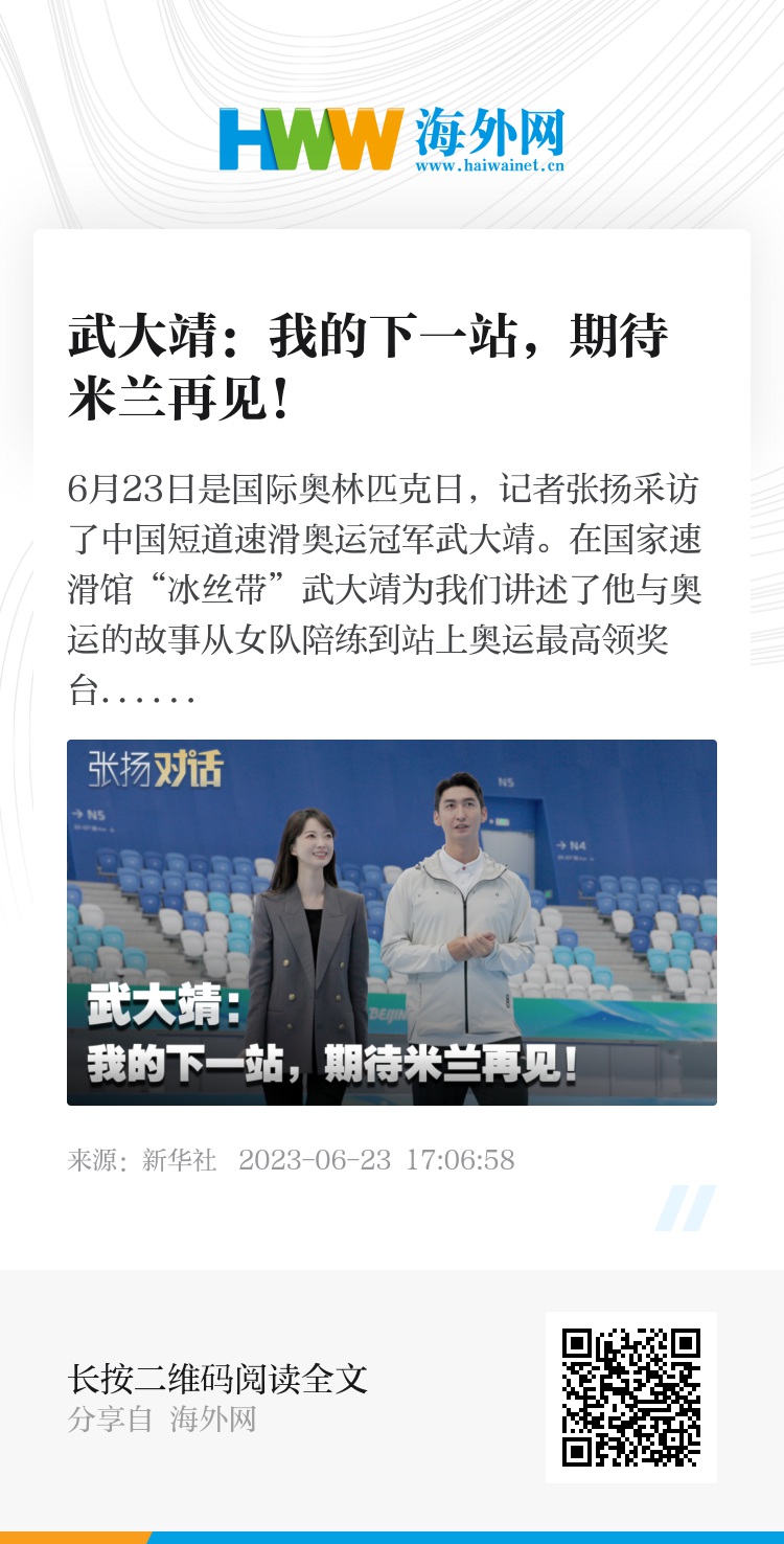 6月23日是国际奥林匹克日,新华社记者张扬采访了中国短道速滑奥运冠军武大靖。