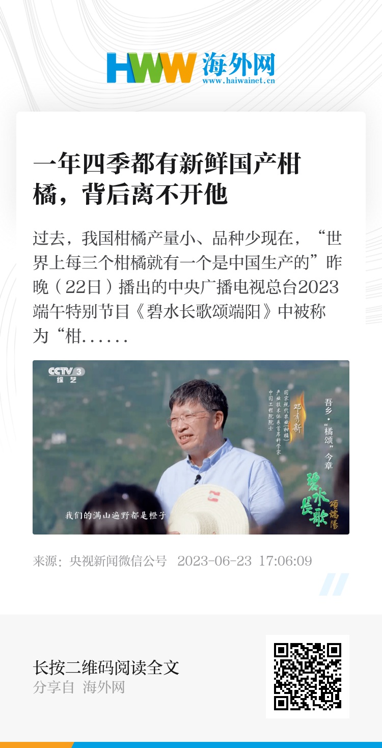 “中国橙”凭借果肉细、味香甜、果核少、外观好等优势,热销国内国际市场。邓秀新曾骄傲地说:“柑橘的种子,已经牢牢地掌握在了我们自己手上。”