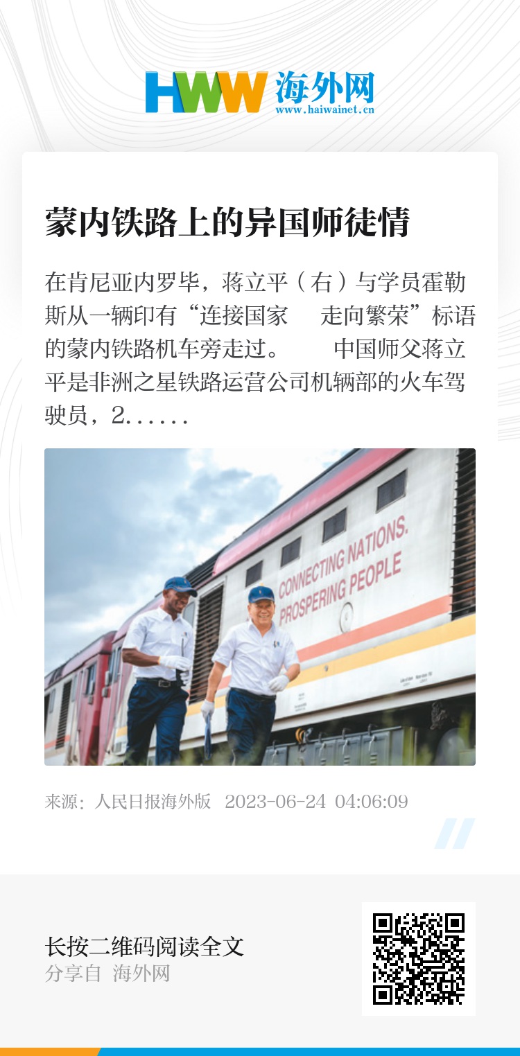 “霍勒斯有想法、很刻苦。希望学员们来中国做客,因为我们是师徒,更是朋友。”蒋立平说。霍勒斯表示,中国老师的专业培训让他受益良多,“希望师父能常回肯尼亚看看”,未来自己打算“为蒙内铁路培养更多可靠的驾驶员”。