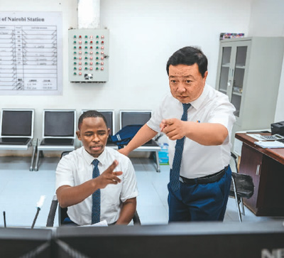 毛鑫是非洲之星铁路运营公司运输部内罗毕车站运转主任,他与徒弟彼得·恩坚加一起制定调度计划、调控列车运转。“我们无保留地把国内的技术标准带到肯尼亚,学员已达到国内车站同等作业标准。”毛鑫说,帮助肯尼亚建设第一条现代化铁路,是他人生中的亮点。彼得表示,自己从师父身上学到了许多专业技术,未来他将把知识传授给更多人。
