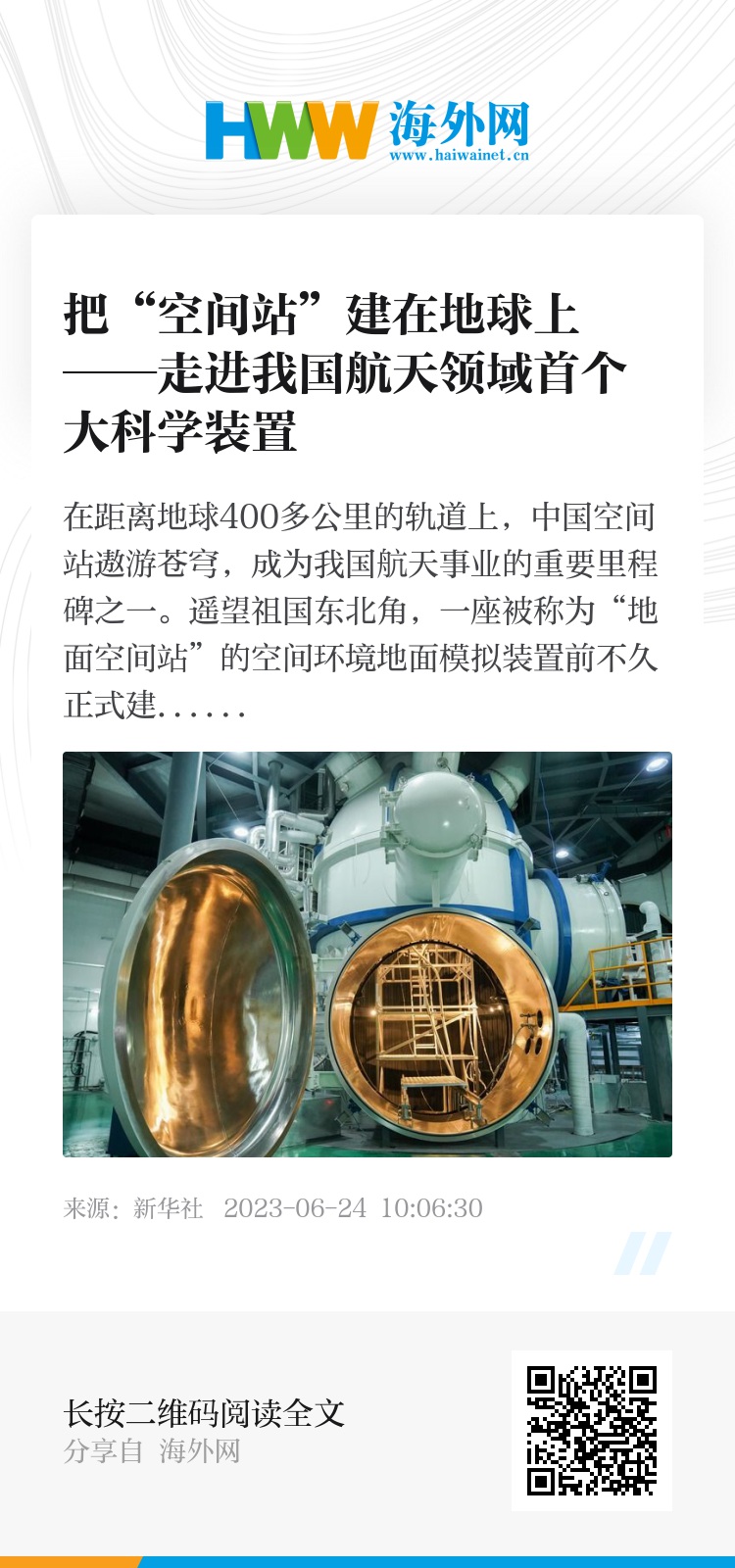 作为我国航天领域首个大科学装置,“地面空间站”是国际上首个综合环境因素最多、可实现多尺度和跨尺度环境效应研究的综合性研究装置,将为我国航天事业发展及人类太空探索贡献智慧和力量。