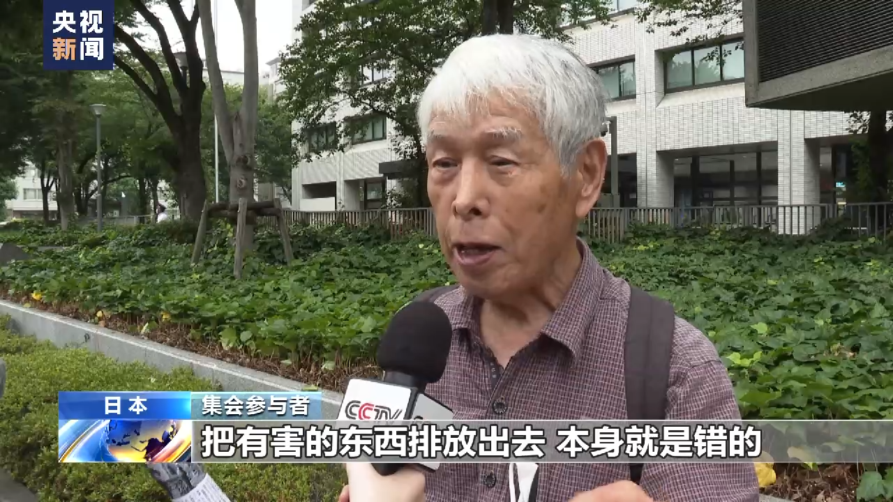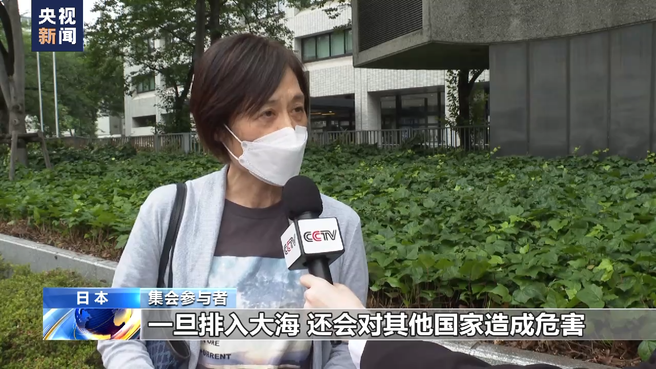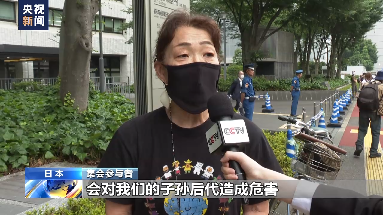 集会参与者:说是“处理水”实则是污染水,里面含有大量的放射性物质。如果真的是安全的话,那请他们用那个水洗澡,去使用它,用它做饭,去喝它,这样生活五年的话应该就清楚了。像这样,没有任何人能说它实际上是安全的,没有人能证明它是安全的。