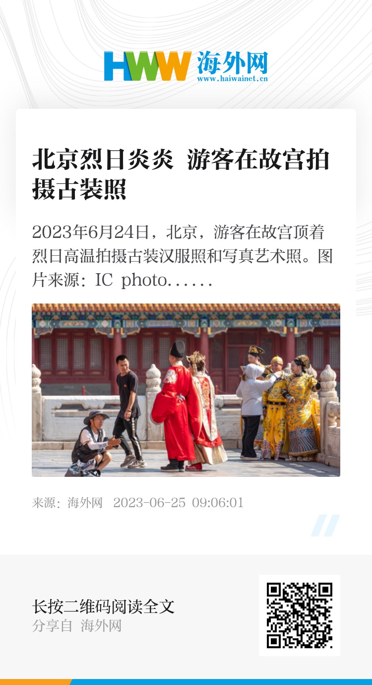 32620415,.北京烈日炎炎 游客在故宫拍摄古装照,.2023-06-25 09:44:01,.204524,.庄鹏泽、张青津
