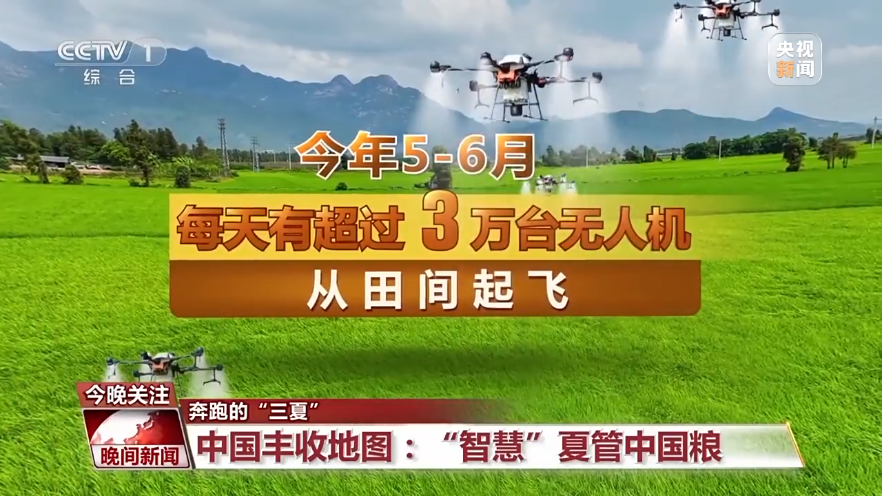 随着技术的升级,无人机还有了撒种、施肥等新应用。数据显示,今年5-6月,每天有超过3万台无人机从田间起飞,为高效又安全的植保“添上翅膀”。而巡逻也是无人机的拿手好戏,借助物联网+大数据技术,农业人员只需要鼠标轻点,几十公里外的土壤墒情、作物长势、天气情况及灾害预警等信息都能通过一块数据大屏呈现在眼前。