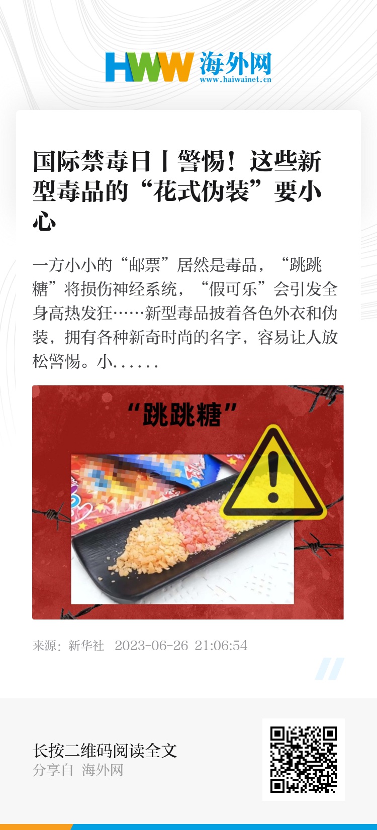 一方小小的“邮票”居然是毒品,“跳跳糖”将损伤神经系统,“假可乐”会引发全身高热发狂……新型毒品披着各色外衣和伪装,拥有各种新奇时尚的名字,容易让人放松警惕。