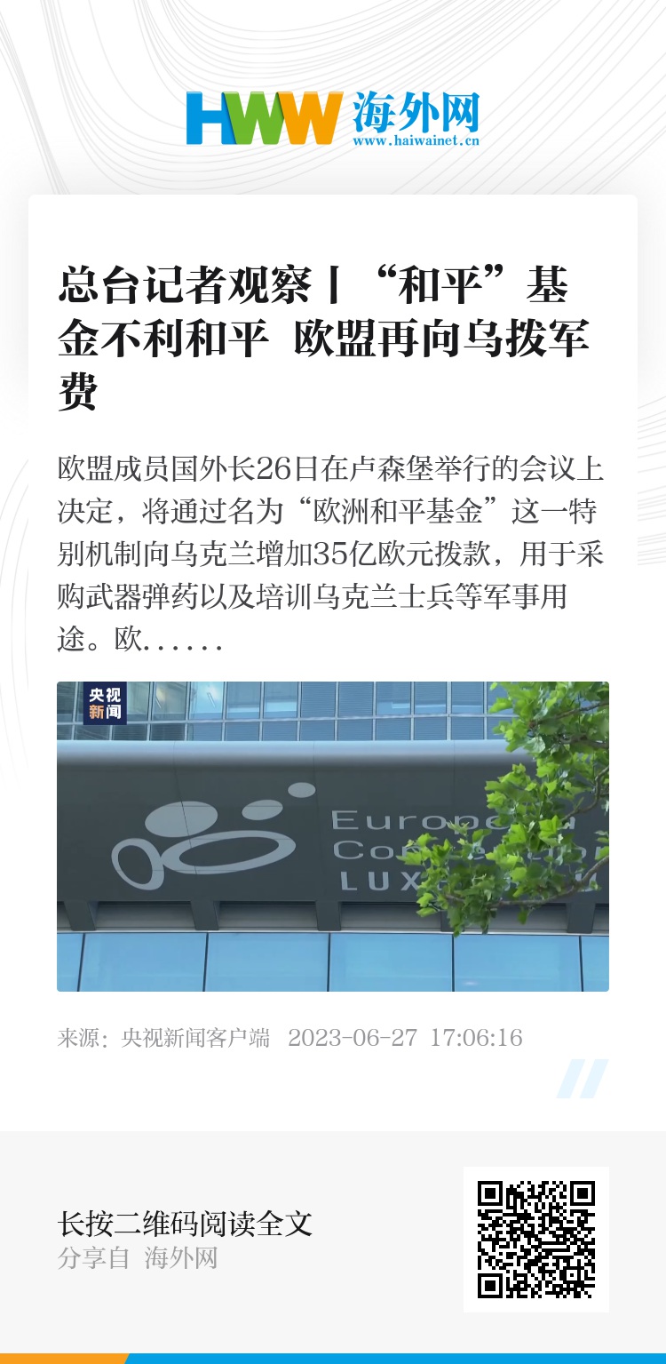 总台记者 郑治:很显然,所谓的“欧洲和平基金”已经违背了其维护和平的初衷,正在成为不利于地区稳定的负资产。外界还担心,此项欧盟长期预算之外的额外支出将对原本就增长乏力的欧盟经济造成负面影响,从而进一步加剧欧洲的民生困境。