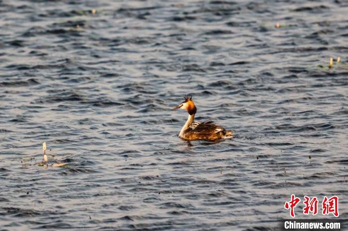 悠闲自在的凤头䴙䴘一家。 梁永峰 摄
