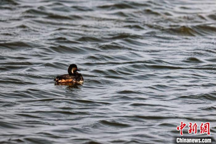 国家二级保护鸟类黑颈䴙䴘在湖面休憩。 梁永峰 摄