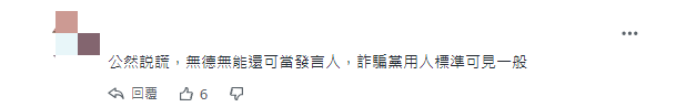 “公然说谎,无德无能还可当发言人,诈骗党用人标准可见一般。”↓