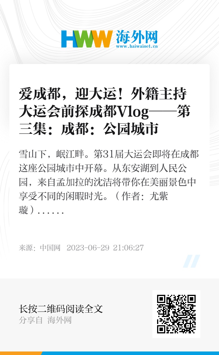爱成都,迎大运!外籍主持大运会前探成都Vlog——第三集:成都:公园城市