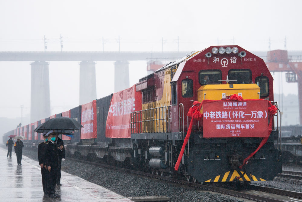 开往老挝万象的中老铁路(怀化—万象)国际货运列车在湖南怀化国际陆港准备发车(2023年1月6日摄)。新华社记者 陈思汗 摄