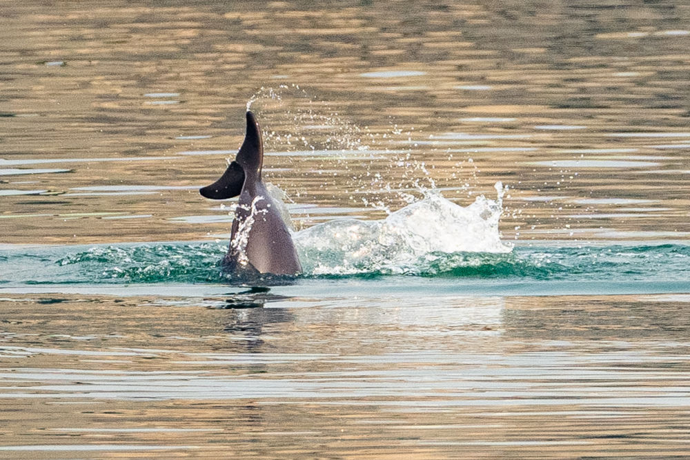 在湖北省宜昌市江边,长江江豚在水中嬉戏(2023年2月27日摄)。根据农业农村部2月28日公布的2022年长江江豚科学考察结果,长江江豚种群数量为1249头。与2017年上一次科学考察相比,江豚数量出现了止跌回升的历史性转折。新华社记者 肖艺九 摄