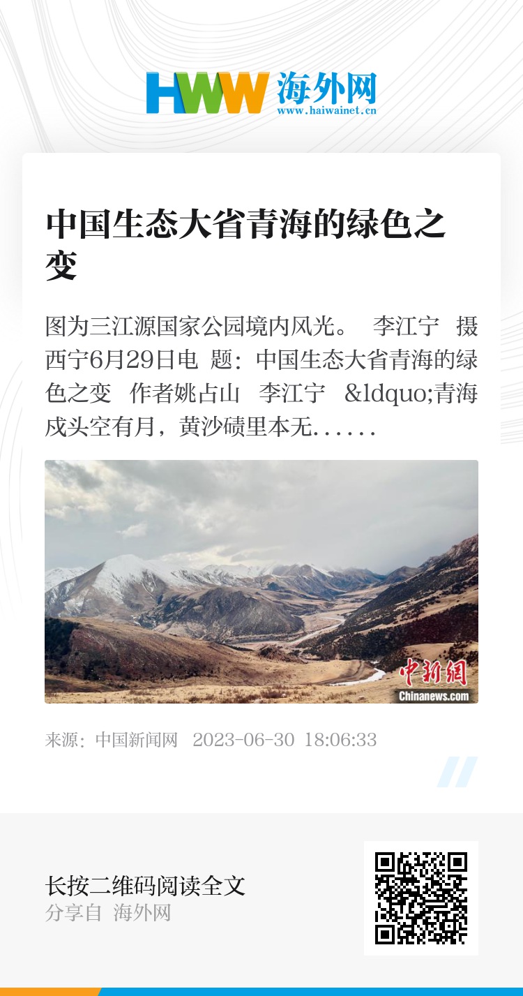 中新网西宁6月29日电 题:中国生态大省青海的绿色之变