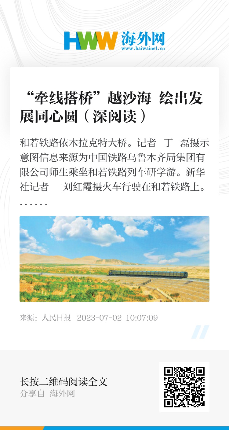 一路走来,环塔克拉玛干沙漠铁路环线,正为南疆各地经济社会发展注入活力。近日,新疆提出南疆环塔里木经济带构想,与天山北坡经济带形成联动发展格局。抬头望,火车跨越沙海,载着沿线人民群众对美好生活的向往奔驰不息。(本报记者 蒋云龙 李亚楠)
