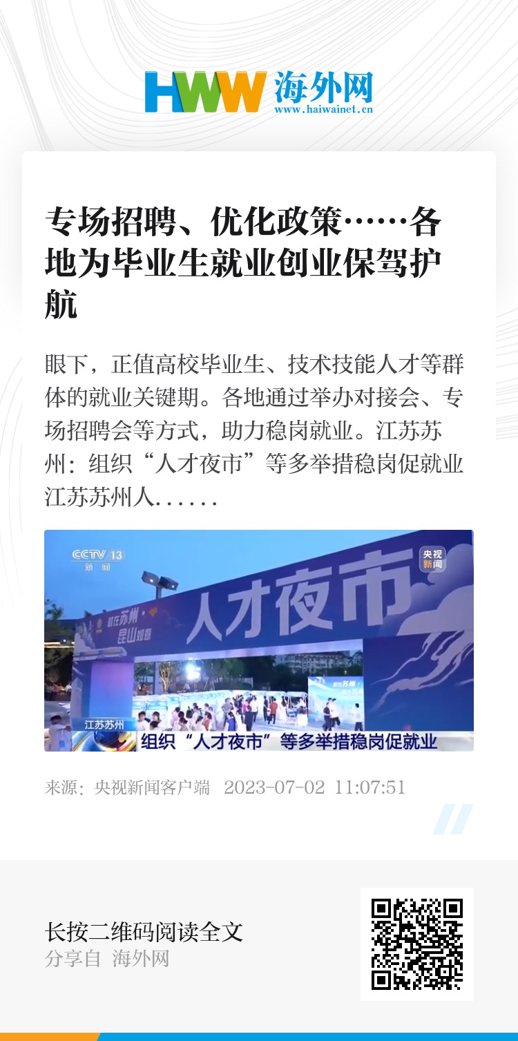 江苏苏州人社部门通过组织“人才夜市招聘活动”、挖掘见习岗位、发放社保补助等举措,让毕业生多渠道了解岗位信息,也让更多企业广泛吸纳人才。