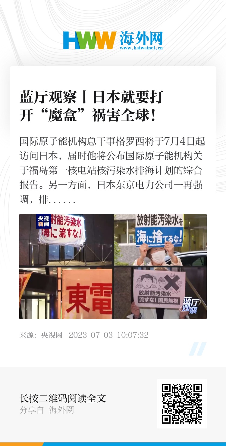 福岛核污染水总量之大、成分之复杂、处置周期之长史无前例。日本的排海决定既说服不了本国民众,也使包括中国在内的邻国及太平洋岛国民众不放心、不答应。日本政府执意强推核污染水排海既不负责,也与其应尽的国际义务背道而驰。全人类没有理由共同承担日本转嫁的核污染风险。