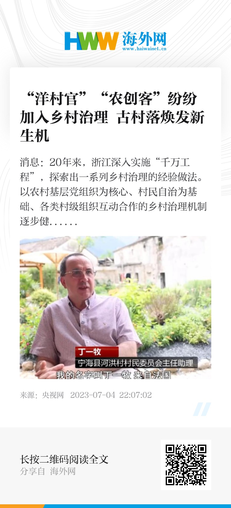 宁海县河洪村村民委员会主任助理 丁一牧:我的名字叫丁一牧,来自法国,大家叫我“洋村官”。