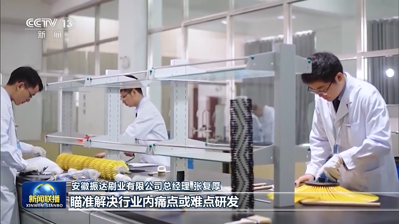 安徽振达刷业有限公司总经理 张复厚:我们就是瞄准高精尖来研发,瞄准解决行业内痛点或难点研发,提高产品的附加值,这把刷子我们投资了200多万来研发出来的。