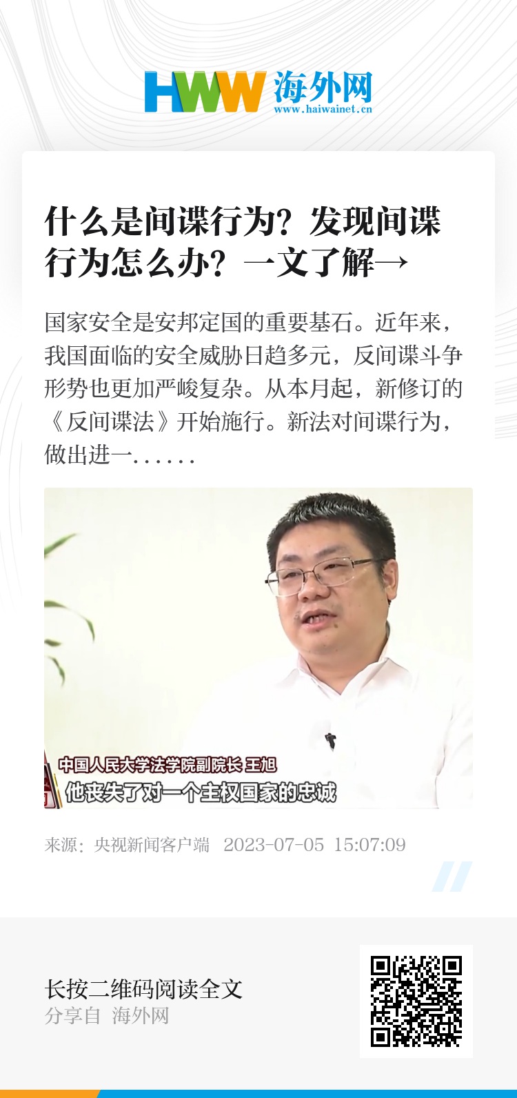 中国人民大学法学院副院长 王旭:第一类就是一些间谍组织,或者间谍组织的代理人,他们通过一些直接攻击,或者窃取有关我们国家安全的一些情报,或者破坏我们的安全秩序。那么第二类就是他会去策反一些我们境内的公民,甚至是公职人员,通过收买,通过采取一些手段,来获得我们公民或者有关公职人员的投靠。