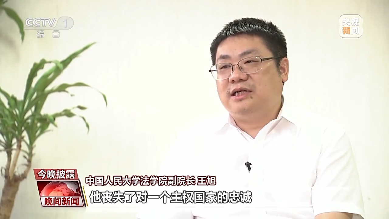 中国人民大学法学院副院长 王旭:投靠的社会危害性、主观恶性,应该是更强烈的。投靠实际上就是说,他丧失了对一个主权国家的忠诚。