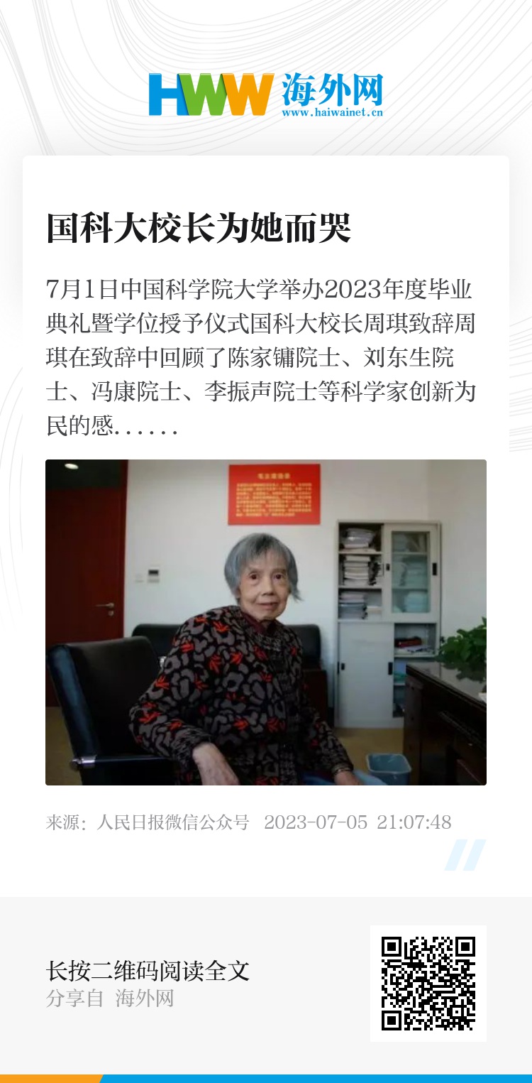 “不久前刚刚离开我们的微电子所研究员黄令仪老师,为了尽快解决国家芯片‘卡脖子’问题,年近八十依然坚守在‘龙芯’研发中心。她说,‘我这辈子最大的心愿就是匍匐在地,擦干祖国身上的耻辱。’每次想到这句话,我都泪流满面。”