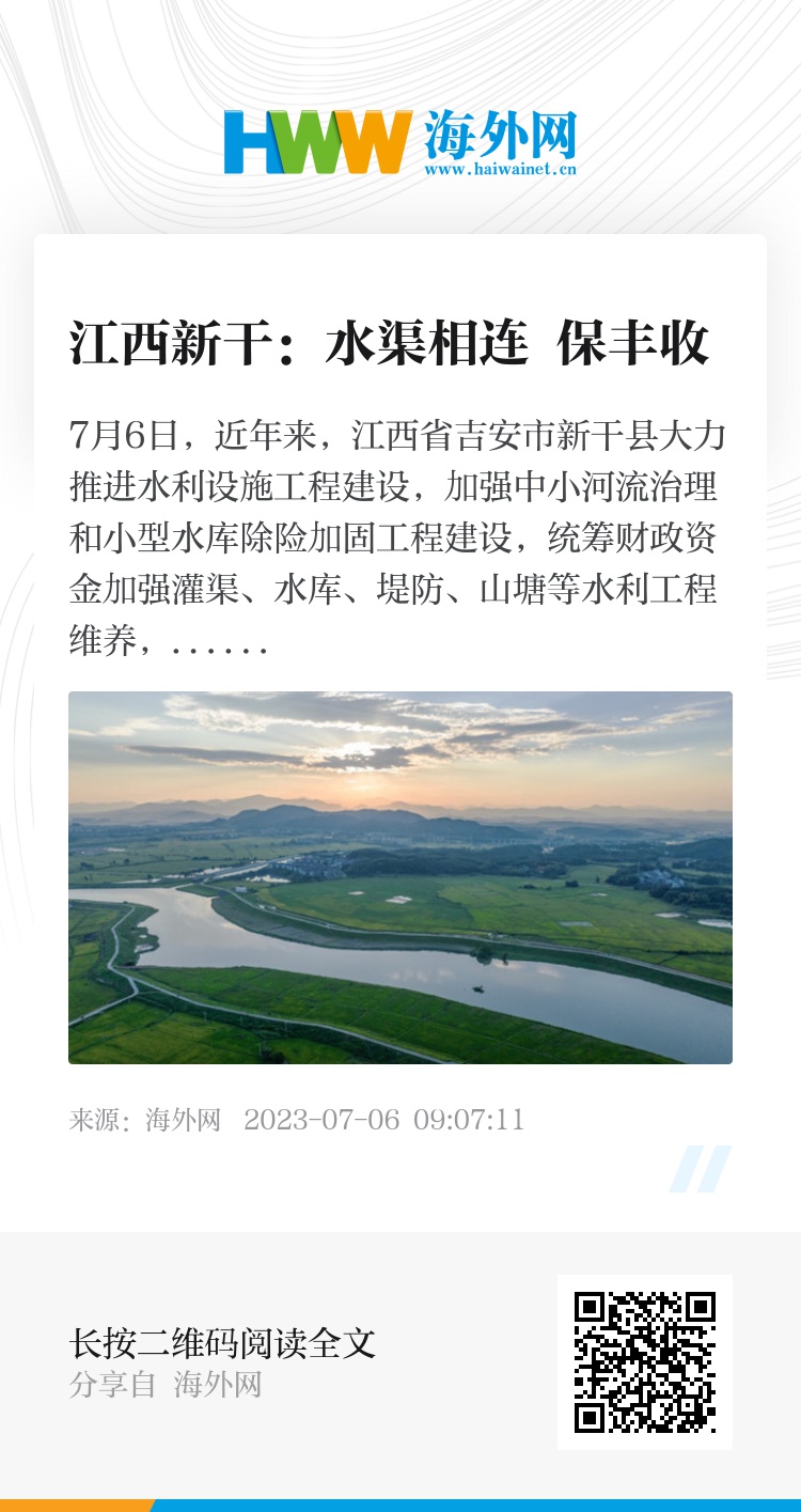 7月6日,近年来,江西省吉安市新干县大力推进水利设施工程建设,加强中小河流治理和小型水库除险加固工程建设,统筹财政资金加强灌渠、水库、堤防、山塘等水利工程维养,实现了“旱能灌、涝能排”目标,为粮食丰产丰收提供了坚实保障。图片来源:IC photo