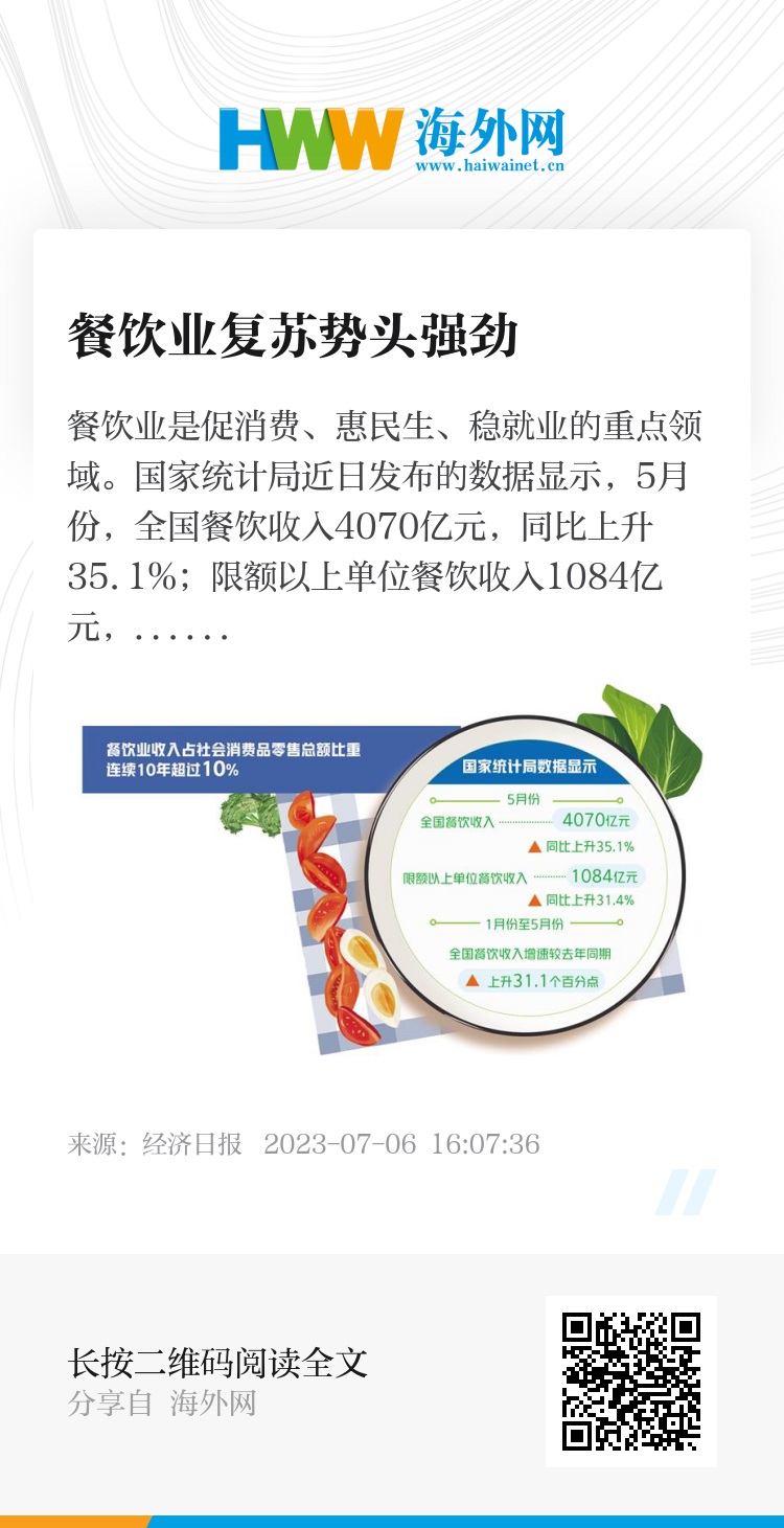“目前,餐饮消费日益回归大众化,餐饮企业应转变经营思路,抓准消费定位,研究消费新模式,提升性价比,共同迎接消费新热点。”杨柳说,面对即将到来的暑期,餐饮业有望迎来新一波消费高峰,要持续挖掘特色,提高运营效率。同时还应持续制止餐饮浪费,保障食品安全,以高质量产品促进行业高质量发展。(经济日报记者 吉蕾蕾)
