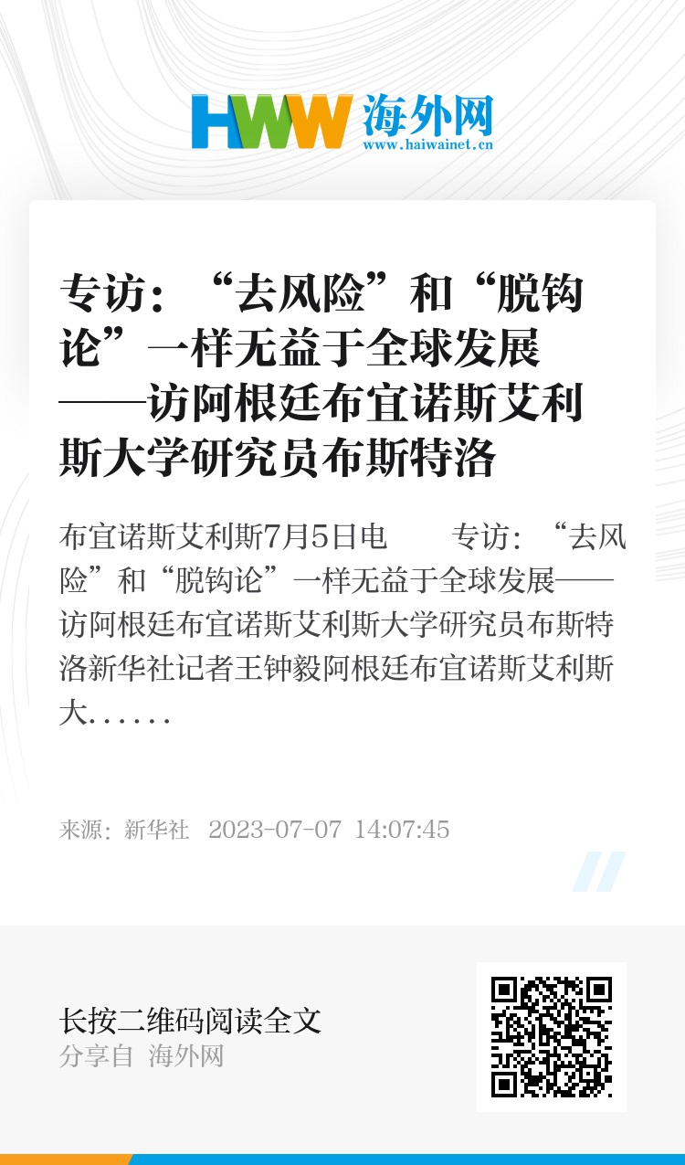 新华社布宜诺斯艾利斯7月5日电 专访:“去风险”和“脱钩论”一样无益于全球发展——访阿根廷布宜诺斯艾利斯大学研究员布斯特洛
