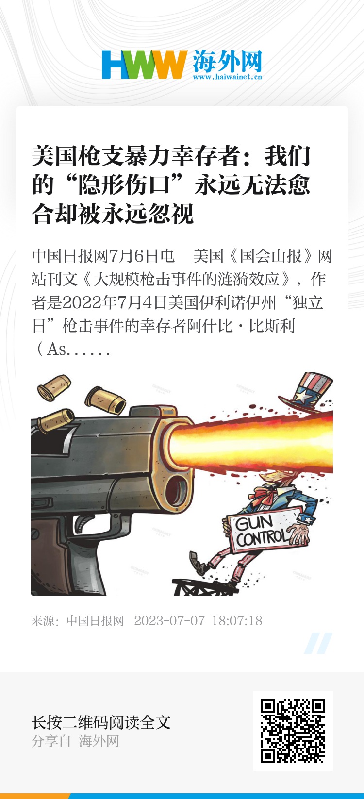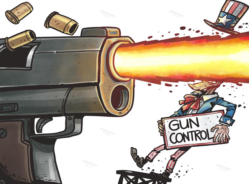 枪支暴力屡禁不止,恰恰是美国枪支文化酿苦果。(来源:中国日报 罗杰 英文《中国日报》2023年6月30日8版)